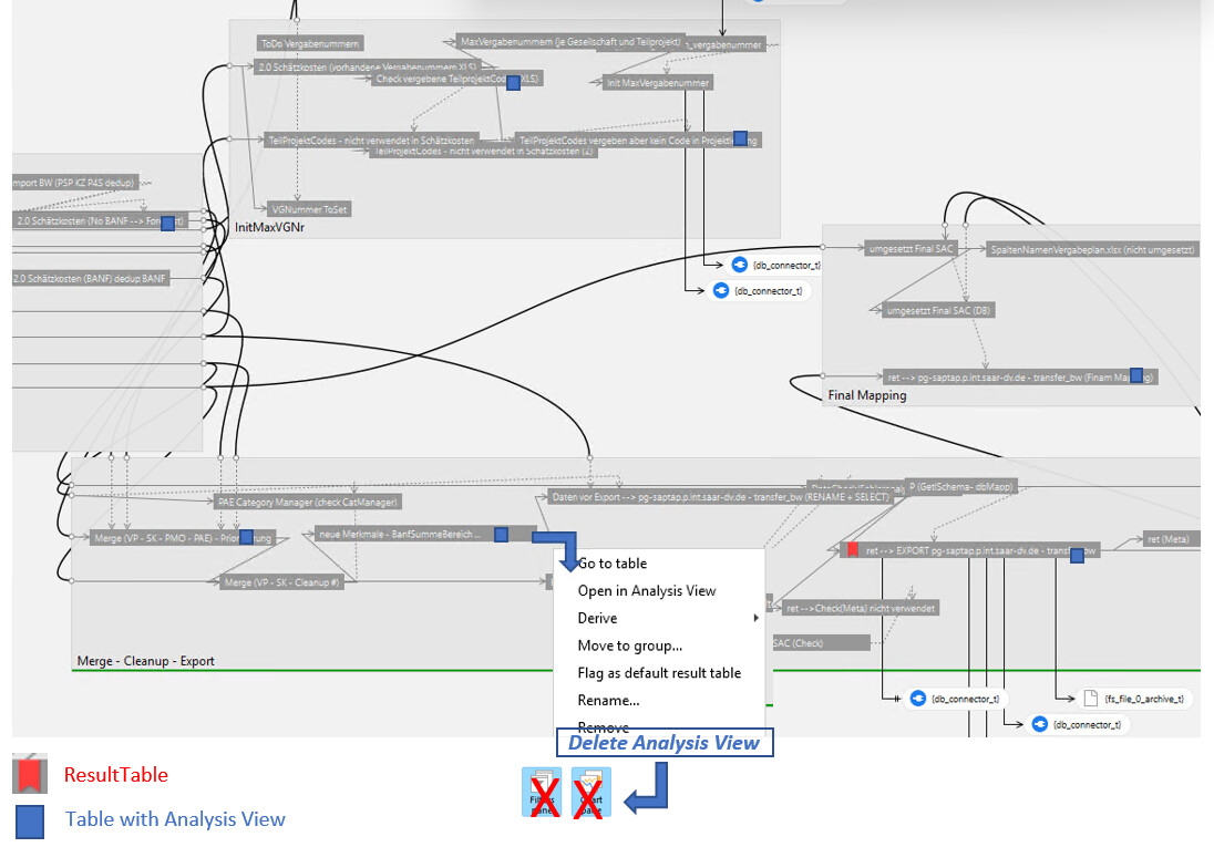A nice feature would be if the tables (like the ResultTable) were marked to see where Analysis Views are stored. A delete function would also be helpful.