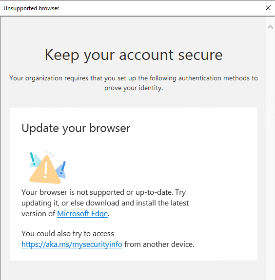 Please complete your Microsoft security verification setup outside the EasyMorph first.