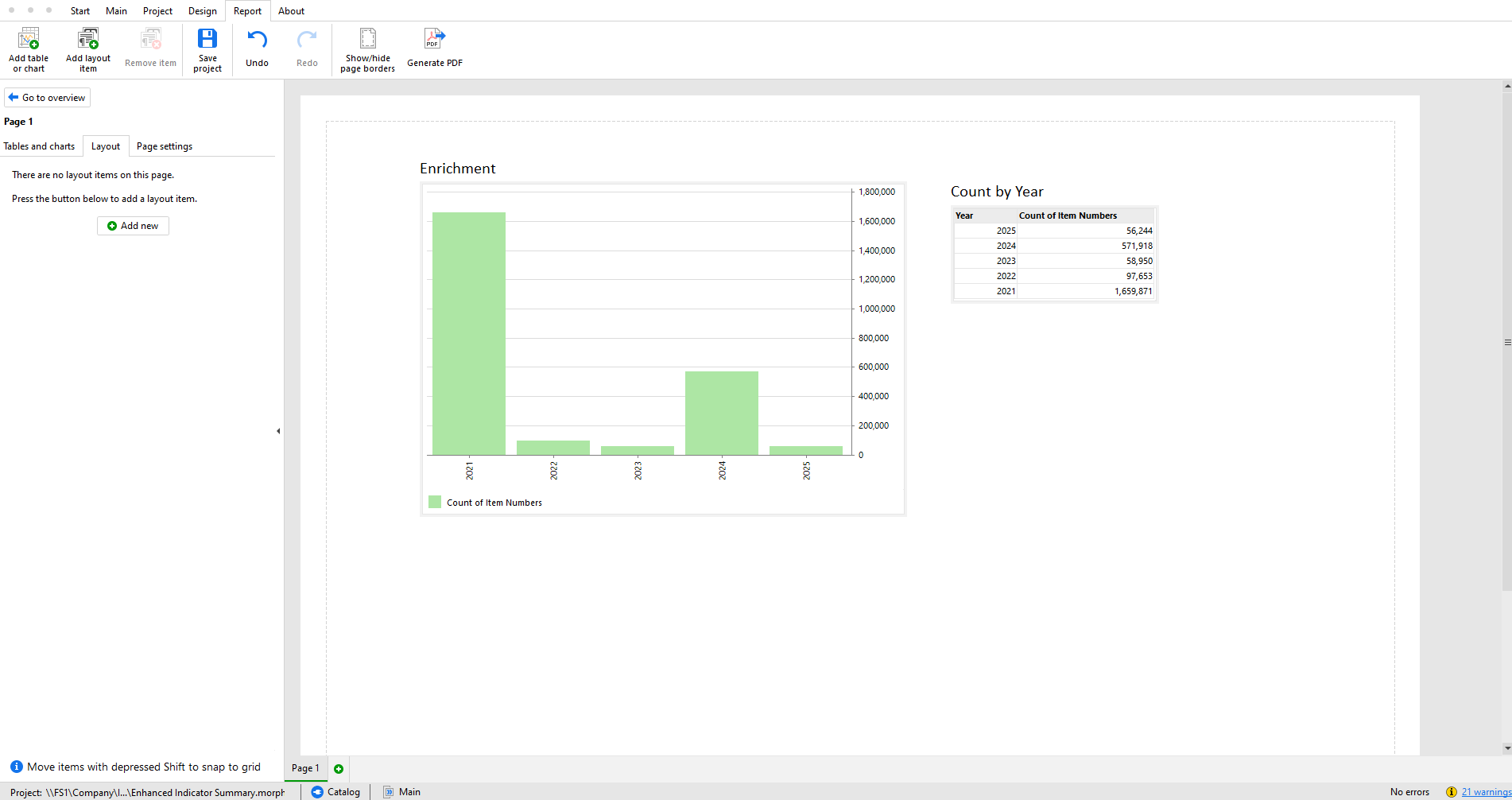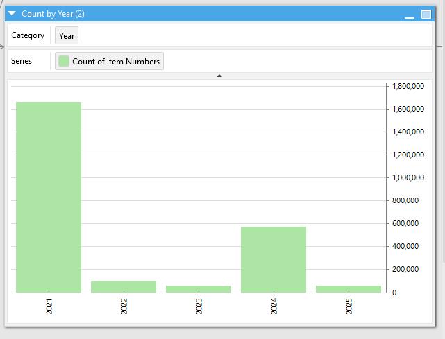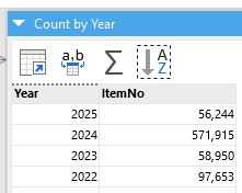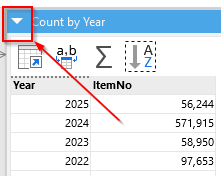 Any table can have an alternative representation in the form of a chart or cross table. You can switch the representations using the selector in the title bar (see below).
