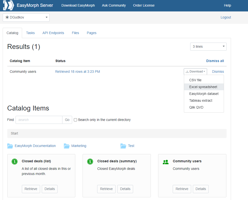 we've got alot of morph projects that our users run from the EM server and to share the result we need to export an Excel and send it by mail. It would be great if there is an option to flag a table as a live result, and when the project finish his run it will show the result table on the web, maybe with the option to export it in Excel, PDF etc.