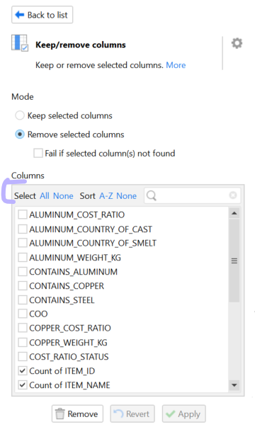 Here is a sample use case: some tables/views are very large e.g. SAP tables sometimes contain hundreds of columns, and when doing BA work I often find myself needing to pore through what is actually valuable in a table. Sometimes I need to filter/include/exclude but then need to make corrections. The list of columns can get very large and it can be tedious to scroll through to figure out what you have selected from the whole. This can especially be the case where there are abstracted column names or aliases from different languages etc. (SAP base column names are in German MATNR/ZZDEVI etc.)