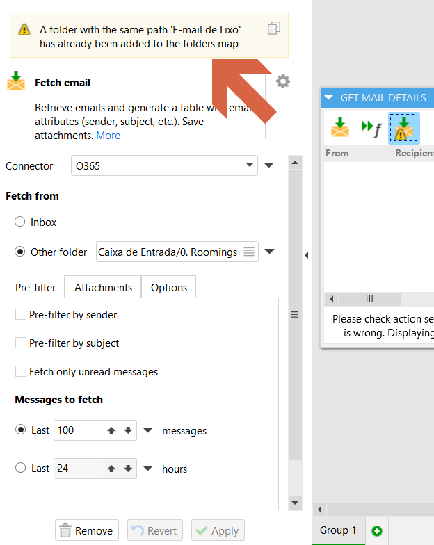 This happens when I try to use the “Fetch Email” action.