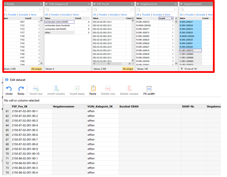 Ahhh. I think I get it now. You want to edit a .dset file (the same applies to editing a dataset that was created using the Sandbox action) by replacing/setting values in some column A for some rows. To speed this up, you want to be able to filter the displayed dataset on some other columns B and C.