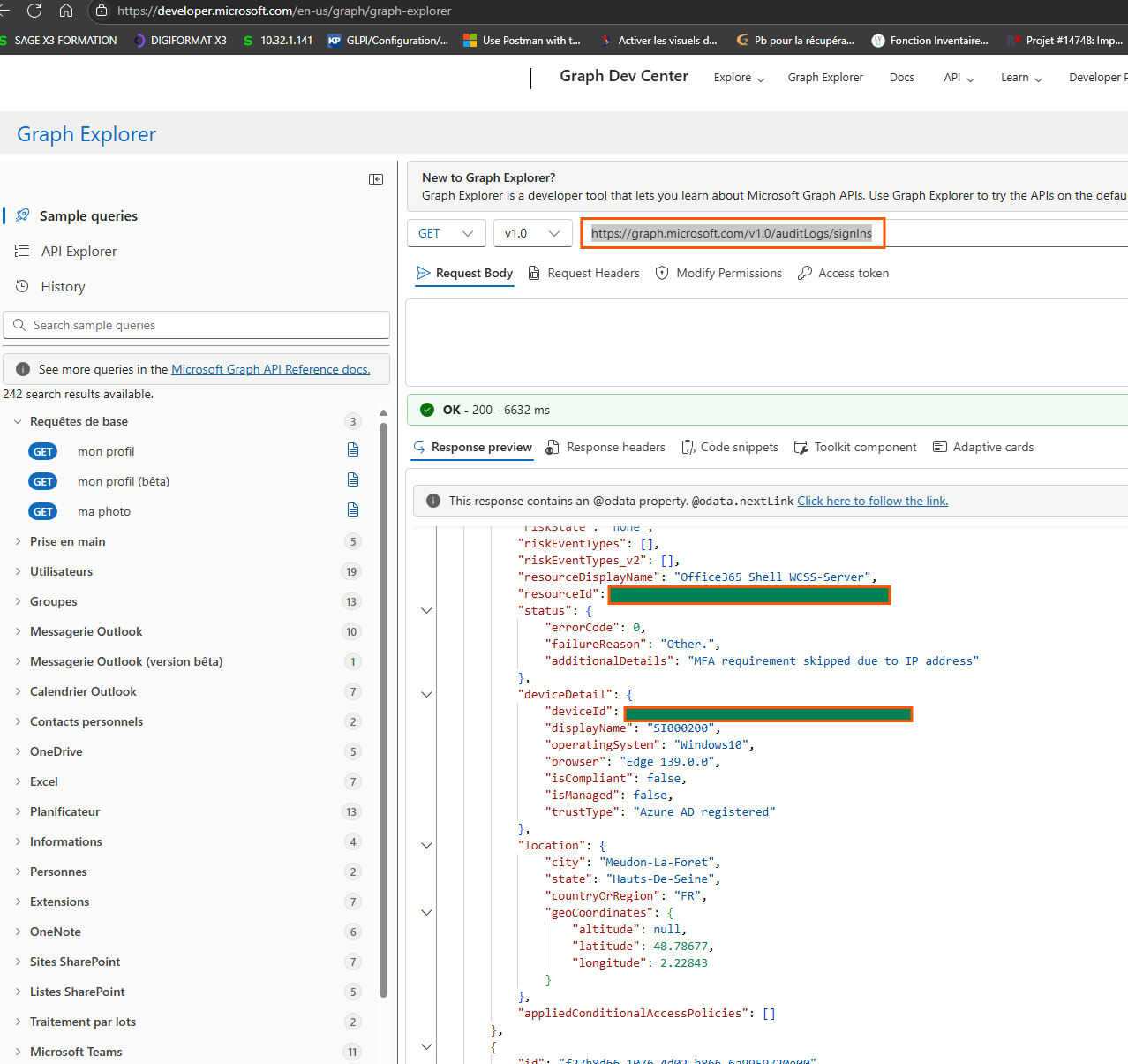 this is not effective as the : https://graph.microsoft.com/v1.0/auditLogs/signIns