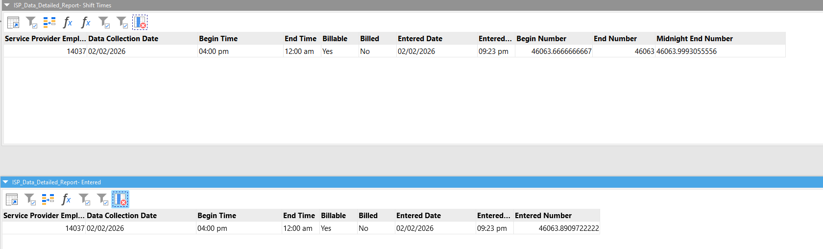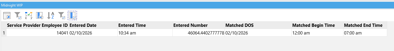 I did get matches, and some of them are correct but some aren’t. In the image below, Employee ID 14041 had a note entered on 02/10 at 10:34 AM that was incorrectly matched with a 02/10 shift from 12:00 AM - 7:00 AM.