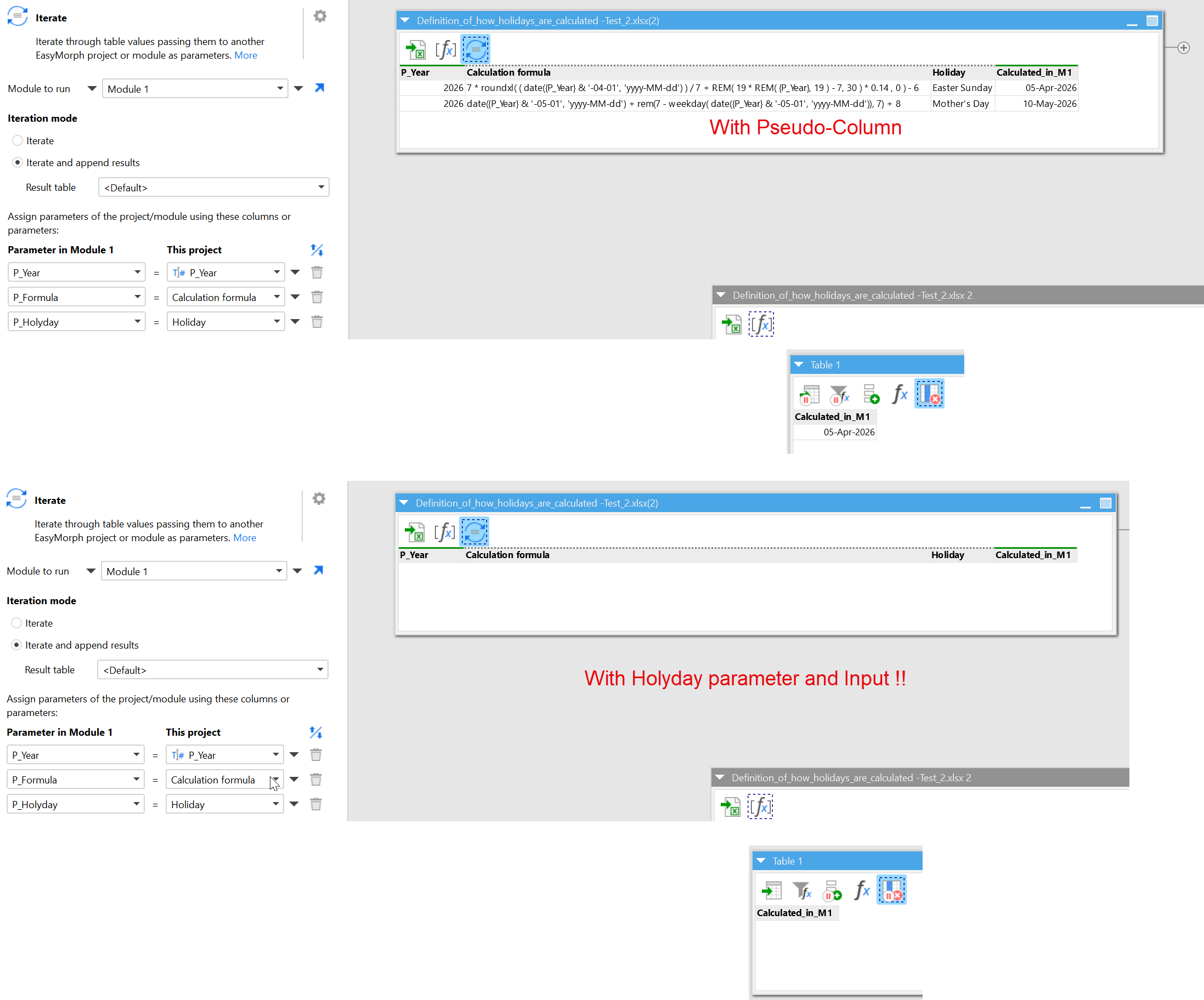 II implemented your suggestion, and it works for both "Iterate table" examples, but not for the first "Iterate" example.