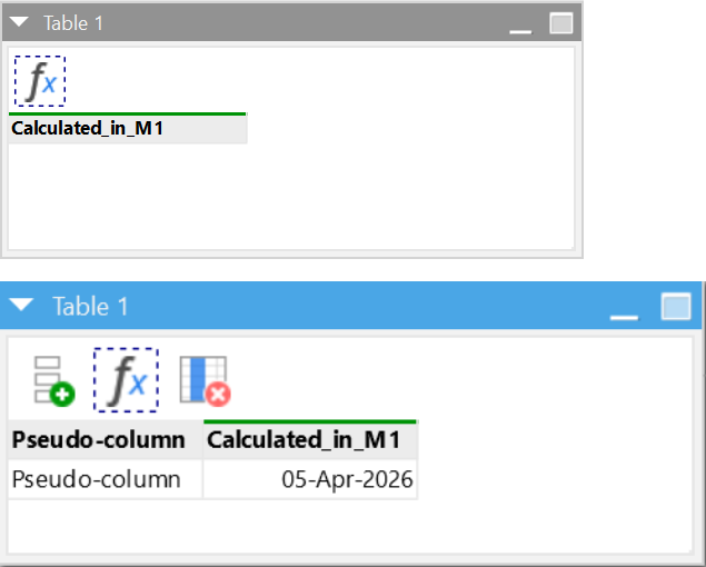 To answer this specific question: the Calculate New Column action runs once for every row of the input dataset; it does not create new rows. So if it is the only action in the table, no rows will be produced. However, if there is a 'pseudo column' (basically any existing row), you will get a result.