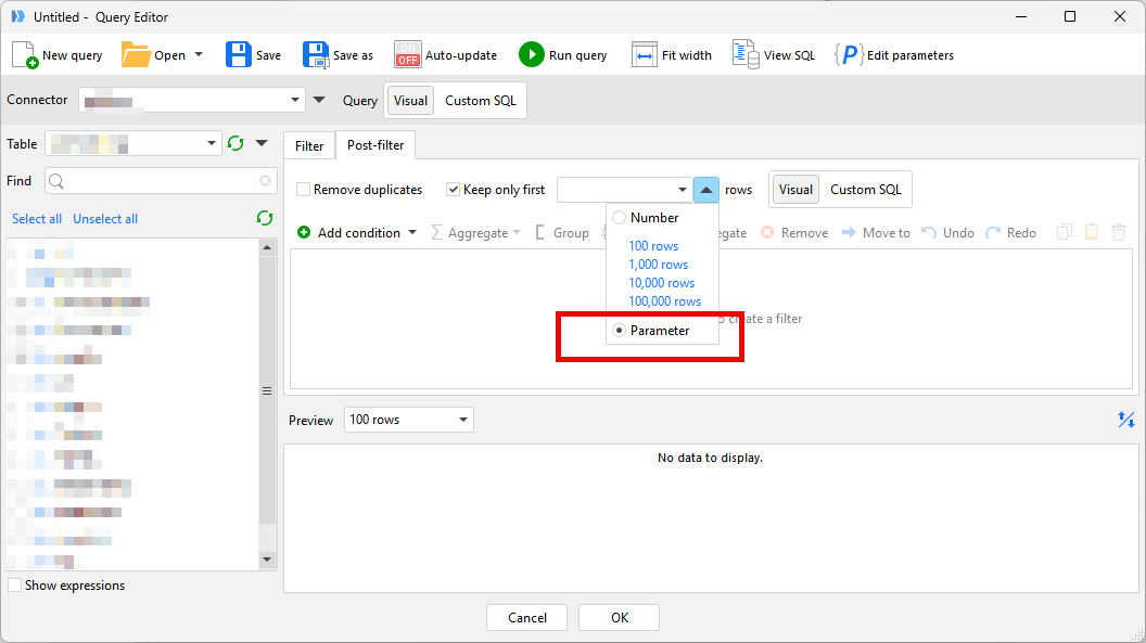 As developer, we would like to have an option to load only the first x rows of all tables in a project where x could be a parameter. This would speed up our developments significantly.