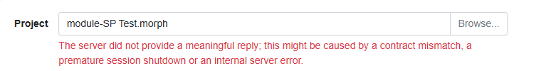 The error states “The server did not provide a meaningful reply; this might be caused by a contract mismatch, a premature session shutdown or an internal server error.”