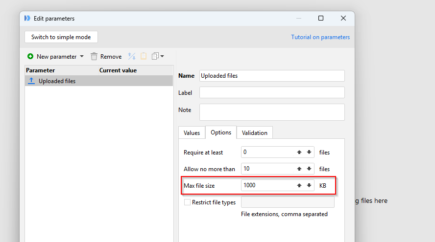 Why are you limiting each uploaded file size to 1Mo on the server ? Is it due to web programming ? Would it be possible to allow more ? 1Mo is a small size for a file nowadays.