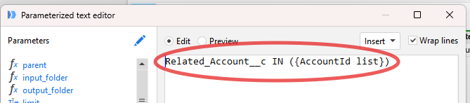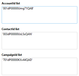 Scenario: I have a number 3 static text, multiline parameters - {AccountIds}, {SupporterIds}, {ContactIds}.