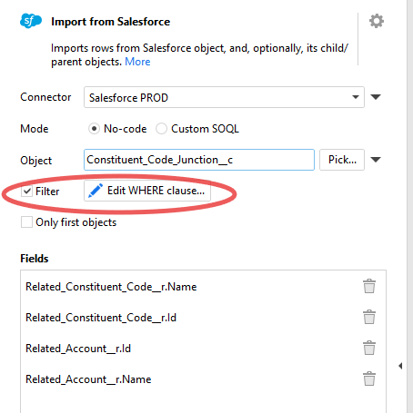 I pass each one in to various 'Import from Salesforce' actions that exist at various points in my workflow, in order to fetch limited pots of data from parameterized Salesforce objects
