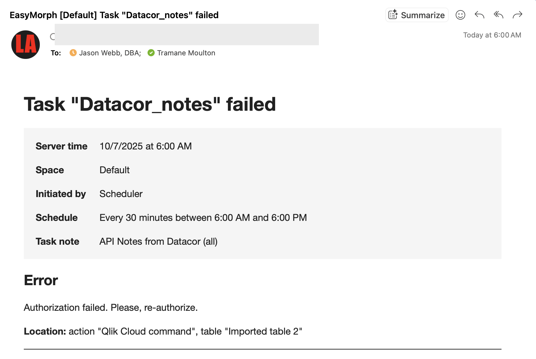 @tmoulton please delete the existing connector and create a new one, from scratch. don’t reauthorize the old one