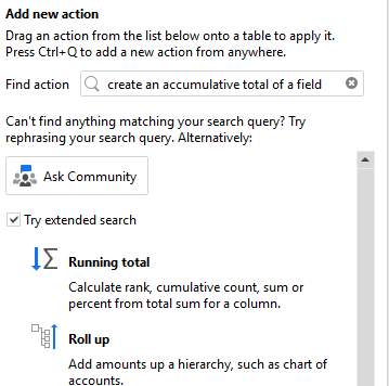 Firstly, the basic version of this feature (just finding the action, not how to configure it) already exists within EasyMorph Desktop, it just isn’t obvious that it is AI doing the work. In the “Find action” search box you can write a description of what you want the action to do. If you tick the “Try extended search” box, your prompt is passed to our cloud AI service and more often than not it returns the most likely action(s) at the top of the results.