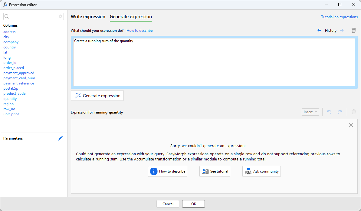 You can also see it in the AI expression generator, if what you ask for isn’t possible within an expression. The AI agent will often correctly suggest the action that could be used instead.